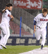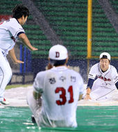 2014.07.22 19: 53박건우-정수빈,'감독님! 우천 세레모니 어땠나요?'