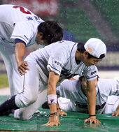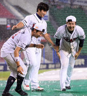 2014.07.22 19: 57우천 세레모니 최재훈,'오늘은 내가 3루 코치~'