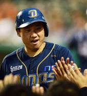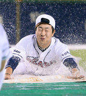2014.07.22 19: 51정수빈,'우천 노게임에도 세레모니는 즐겁게'