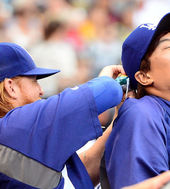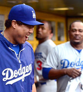 2014.07.24 08: 36류현진,'유리베 덕분에 미소가 끊이질 않네'