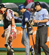 2014.07.24 20: 50심판 합의 판정에 의해 다시 불려나오는 나성범