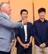 2014.07.25 12: 28환한 미소 보이는 히딩크-이영표-박지성