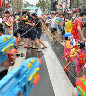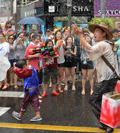 물총 축제 즐기는 참가자들
