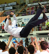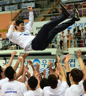 2014.07.27 18: 13김종민,'우승도 고마운데 헹가래까지~'
