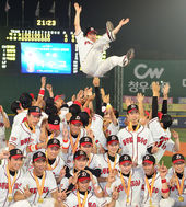 2014.07.28 21: 48'청룡기 3연패' 덕수고 정윤진 감독,'짜릿한 우승 헹가래'