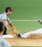 2014.07.30 19: 41나바로,'중견수 플라이 때 2루 태그업해 세이프'