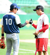 2014.08.02 16: 05이야기 나누는 SK 이만수 감독-성준 코치