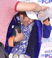 2014.08.03 14: 17우승 채성민,'동료들 물세례에 당황'