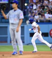 2014.08.03 11: 30와다 츠요시에 역전 투런 홈런을 치고 베이스를 도는 맷 켐프