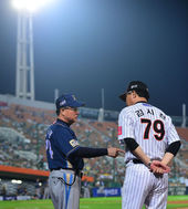 2014.08.05 20: 41이야기 나누는 김경문-김시진,'서스펜디드? 노게임?'