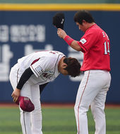2014.08.05 20: 10강정호-최정,'누가 더 예의 바르게 인사하나'