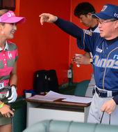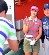 2014.08.05 19: 46골퍼 김하늘,'김경문 감독님! 정말 오랜만이에요'