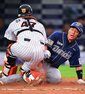 2014.08.05 19: 21홈쇄도 손시헌,'정확하게 홈터치'