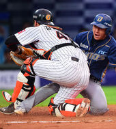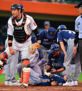 2014.08.05 19: 24세이프 인정하는 강민호,'비디오판독 필요없어요'