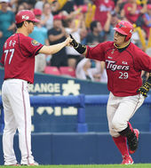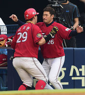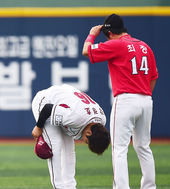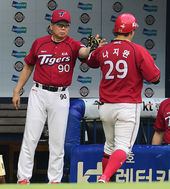 2014.08.05 18: 48나지완-서재응,'두 남자들의 가슴 치기'