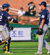 2014.08.06 18: 03김태군-김진성,'서스펜디드 게임 승리 지켰어'
