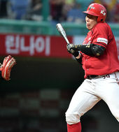 2014.08.07 19: 46나지완,'몸에 맞는 볼로 출루'