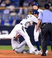 2014.08.08 20: 32모창민-채은성,'세이프냐? 아웃이냐?'