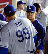 2014.08.08 15: 38흐뭇한 미소 매팅리 감독,'현진이 덕분에 웃네'