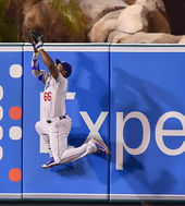 2014.08.08 14: 11몸을 사리지않는 명품수비를 선보인 푸이그