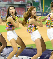 2014.08.08 21: 35두산 치어리더 ,'기차놀이 하며 신나게'