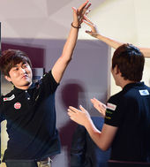 2014.08.09 20: 55'최종병기' 이영호,'원이삭 잡고 기분좋은 하이파이브'
