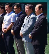 2014.08.09 14: 50KBO 총재배 사회인 야구대회 개막식 참석한 구본능 총재-양해영 사무총장