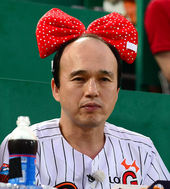 2014.08.12 19: 23사직구장 찾은 김광규,'왕 리본 머리띠 쓰고 롯데 응원!'