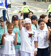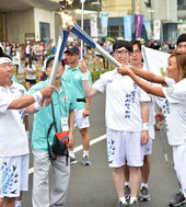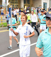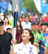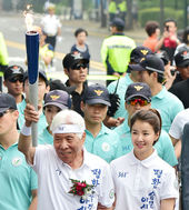 2014.08.13 17: 38이시영,'두번째 성화 봉송 주자에게 불씨 전달'