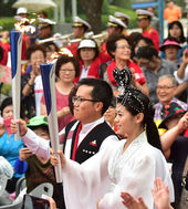 2014.08.13 17: 25박수 받으며 들어오는 국내 성화와 해외 성화
