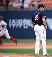2014.08.14 18: 52두산 선발 마야,'첫타자부터 홈런이라니'