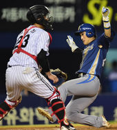 2014.08.15 20: 05김태군,'더블플레이로 무사 만루 위기 탈출'