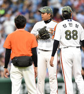 2014.08.15 18: 40타구 맞은 유창식,'괜찮아요'