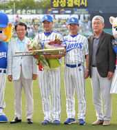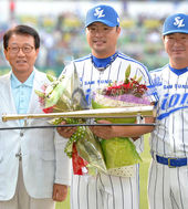 2014.08.16 18: 28박한이,'100홈런 시상식에서 환한 미소'