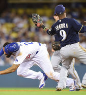 2014.08.16 12: 26런다운 걸린 맷 켐프,'태그를 피해'