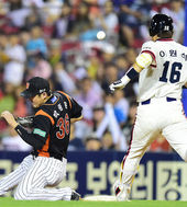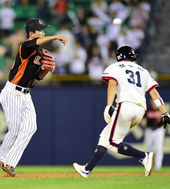 2014.08.17 20: 36포구 실패하는 박종윤,'송구가 나쁘다'