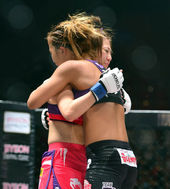 2014.08.17 22: 24로드 FC 송가연 데뷔전,'승리 후 에미와 뜨거운 포동 나누는 송가연'
