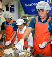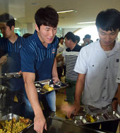 2014.08.18 13: 04KCC 농구단,'학생들에게 직접 배식해요'