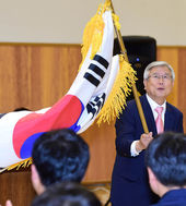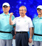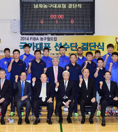2014.08.19 15: 12단기 흔드는 남자농구대표팀 이경호 단장