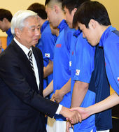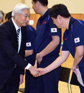 2014.08.19 15: 14선수들과 악수 나누는 방열 대한농구협회장