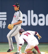 2014.08.20 18: 54LG 선발 장진용,'서건창 정말 빠르네'
