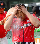2014.08.22 17: 34이만수 감독,'아이스버킷챌린지 마치고 물 뿜어!'