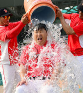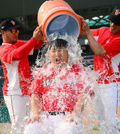 2014.08.22 16: 46정근우,'아이스버킷챌린지! 얼음 폭포 세례!'