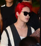 2014.08.22 08: 26JYJ 김준수,'돋보이는 붉은 헤어스타일'