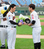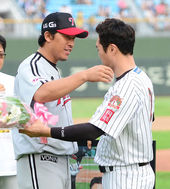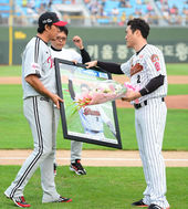 2014.08.23 18: 37조성환,'양상문 감독-이병규-박준서와 함께'