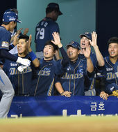 2014.08.23 21: 34역전에 환호하는 NC,'분위기 최고야!'