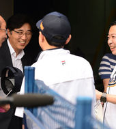 2014.08.24 17: 22두산 박정원 구단주, '송일수 감독, 4강 부탁합니다'