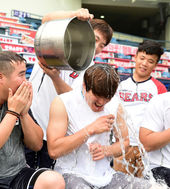 2014.08.24 17: 22유희관-김재호-양의지, '아이스버킷챌린지' 긴장되네