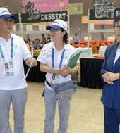 선수촌 식당 방문한 이에리사 선수촌장