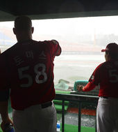 2014.08.26 18: 35목동야구장,'억수같이 쏟아지는 비로 우천 연기'